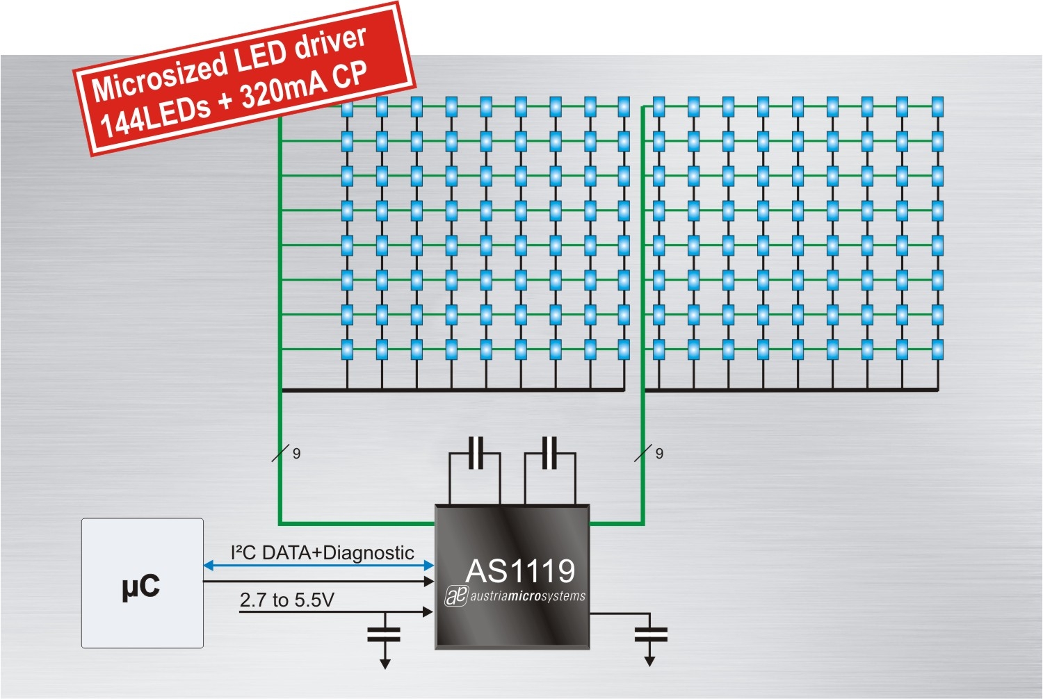 中國——全球領先的通信、工業、醫療和汽車領域模擬集成電路設計者及制造商奧地利微電子公司推出最先進、最小尺寸(同樣 PCB空間的通道數)的LED點陣驅動器AS1119。