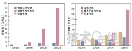 北美的大容量充電電池市場(chǎng)今后有望大幅增長(zhǎng)。據(jù)估算,2020年面向電動(dòng)汽車及電車等交通用途的市場(chǎng)規(guī)模將擴(kuò)大至99億美元左右(下圖)。