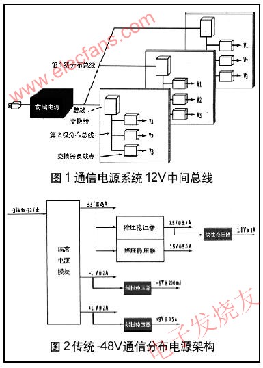 為了滿足這些要求,電源系統架構正在從早期的集中提供較低電壓和電流變換到目前的分布方法。代替單電源產生所有必須的電壓電平,現在電源沿著第2和第3總線分布到dc-dc變換器,降壓到適合各個電路或子系統的電壓電平。