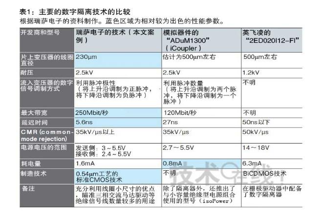 美國模擬器件(ADI)、美國芯科實驗室(Silicon Laboratories)以及德國英飛凌科技(Infineon Technologies)等已經(jīng)使采用片上變壓器的隔離器實現(xiàn)了實用化。此次技術(shù)與這些現(xiàn)有技術(shù)的不同之處在于,考慮到要集成在廉價的微控制器上,將變壓器的面積減小到了原來的1/4左右。具體情況是,通過電路技術(shù)的改進(jìn),將原來需要500μm左右的變壓器直徑降至230μm(表1)。