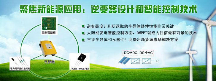 太陽能發(fā)電系統(tǒng)對半導(dǎo)體器件有什么樣的要求?這篇文章可以告訴大家。A/D轉(zhuǎn)換器、整流器、IGBT模塊、驅(qū)動、傳感、MCU以及電容等元器件廠商都有望在新得市場上獲得契機。這些器件中,最重要的是逆變器,它的任務(wù)是把光伏單元可變的直流電壓輸出轉(zhuǎn)換為清潔的50Hz或60Hz的正弦電壓源,為了保證輸出電壓的穩(wěn)定,需要一系列器件的配合,例如傳感器來跟蹤太陽方位角、A/D轉(zhuǎn)換器來實現(xiàn)數(shù)據(jù)轉(zhuǎn)換,MCU來實現(xiàn)穩(wěn)定輸出的算法……那么主流半導(dǎo)體和元器件廠商是如何針對新能源市場打造解決方案的?我們將業(yè)界的趨勢和熱點作一次總結(jié),希望對讀者提供一定參考。