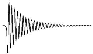 圖1中的電容、電感決定了震蕩頻率f0,電容容量和回路中的損耗決定了衰減的時間。當電容C1=150μf,電感L1=200μh時,理論的震蕩頻率是914Hz,由于實際電路中存在誤差,實測值約800Hz,衰減的時間超過20ms。