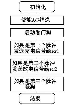 圖5是主程序流程圖。由于電路中的可控硅觸發時間要求嚴格,所以,程序中分別使用了定時器T0作為SCR1充電的觸發定時信號,定時器T1作為SCR2放電時間的定時信號。