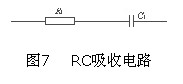 在本設計中,由于電源容量僅為500W,因此,可以采用簡單的RC吸收電路。電路圖如圖7所示。
