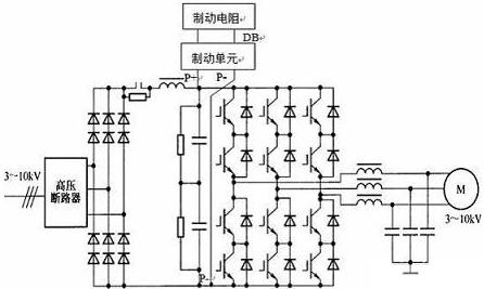 圖2.具有直流放電制動裝置的IGBT直接串聯高壓變頻器主電路圖