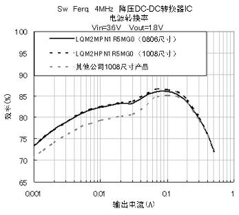 如同圖4中顯示的Rac特性,LQM系列產(chǎn)品能夠充分抑制Rac。同時(shí),圖2的電流-感值偏執(zhí)特性中顯示,它在電流通電時(shí)也能確保高感值,擁有良好的電力變換效率特性。這些性能能夠?qū)崿F(xiàn)手機(jī)在待機(jī)狀態(tài)下的高電力變換效率,對(duì)延長電池壽命做出貢獻(xiàn)。