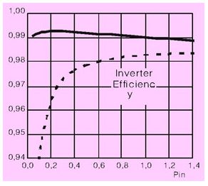 歐洲效率的改善所帶來的經(jīng)濟(jì)效益也很容易通過計(jì)算得到。例如以一個(gè)額定功率3kw的光伏逆變器為例,根據(jù)現(xiàn)在市場上的成本估算,光伏發(fā)電每千瓦安裝成本大約需要4000歐元[2],那也就意味著光伏逆變器每提高歐效1%就可以節(jié)省120歐元(光伏發(fā)電現(xiàn)在的成本大概在每千瓦4000歐元,或者說每瓦 4歐元,包括太陽能電池和光伏逆變器,對于一個(gè)3kw的發(fā)電裝置,如果逆變器效率提高了1%,也就是說多發(fā)了30w,那么成本就可以節(jié)省4×30=120 歐元)。提高光伏逆變器的歐洲效率帶來的經(jīng)濟(jì)效益是顯而易見的,“不惜成本”追求更高的歐效也成為現(xiàn)在光伏逆變器發(fā)展的趨勢。