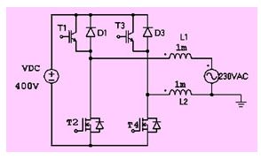 由于上橋臂的igbt工作在50hz的開關(guān)頻率下,實(shí)際上并不需要對該支路進(jìn)行濾波。因此對電路拓?fù)溥M(jìn)行優(yōu)化,可以得到圖14所示的發(fā)射極開路型拓?fù)洹_@種拓?fù)涞膬?yōu)點(diǎn)是只有有高頻電流經(jīng)過的支路才有濾波電感,從而減小了輸出濾波電路的損耗。