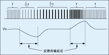當(dāng)負(fù)載降低到一定程度時(shí),脈沖跳躍機(jī)制將使有效開關(guān)頻率減半,這意味著轉(zhuǎn)換器供應(yīng)負(fù)載的功率減半,因此回掃電路將增加脈沖寬度以補(bǔ)足輸出負(fù)載所需要的功率,而在脈沖寬度增加到負(fù)載所需功率之前,輸出電壓將產(chǎn)生突降。相反的情形發(fā)生在等效開關(guān)頻率增加時(shí),輸出電壓將發(fā)生突升。這種負(fù)載變動時(shí)輸出電壓突升與突降是開關(guān)頻率非連續(xù)變動(以整數(shù)倍增加或降低)的必然結(jié)果。