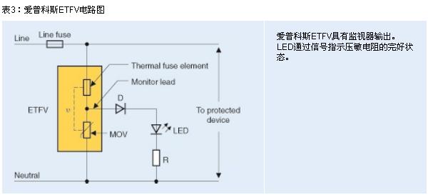 為使太陽能逆變器制造商以低成本滿足各大標(biāo)準(zhǔn)及保險(xiǎn)公司的嚴(yán)格要求,TDK-EPC現(xiàn)開發(fā)出 ETFV系列(愛普科斯熱熔式壓敏電阻)。這些組件通過串聯(lián)電路組合在一起,包括一個(gè)壓敏電阻和一個(gè)熱熔絲。如果壓敏電阻已嚴(yán)重退化,并致使較高漏電流導(dǎo)致過熱,熔絲將熔斷以斷開壓敏電阻。上述元件的一大特色便是監(jiān)視引線:通過延伸壓敏電阻與熱熔絲之間的觸點(diǎn)以驅(qū)動(dòng)LED(參見圖3)。