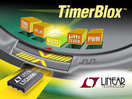 凌力爾特公司 (Linear Technology CorporaTIon) 推出 TimerBlox系列,這是一組簡單、小巧、準確和低功耗型器件,可提供 5 種常用的定時功能:壓控振蕩器、低頻振蕩器、脈寬調制振蕩器、單穩脈沖發生器 (單觸發) 和延遲。作為一個產品系列,TimerBlox 器件提供了一種精準和易用的解決方案;這些器件提供了一個公共平臺,并允許為每種功能使用精準的基本構件解決方案。