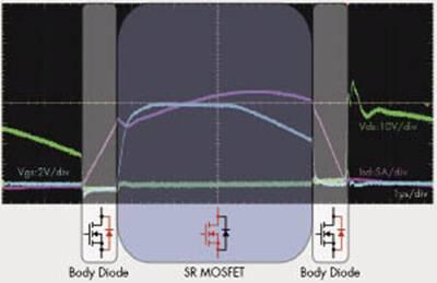 除了RDS(ON)和QG之外,同步整流結構中的其它參數,如體二極管反向恢復、內部柵極阻抗以及MOSFET的輸出電荷(QOSS),現在也變得更具相關性。在開關頻率和輸出電流較高時,這些損耗元件的重要性便更為明顯。飛兆半導體的中壓MOSFET產品現在開始針對二極管反向恢復以及輸出電容的最小化進行優化。