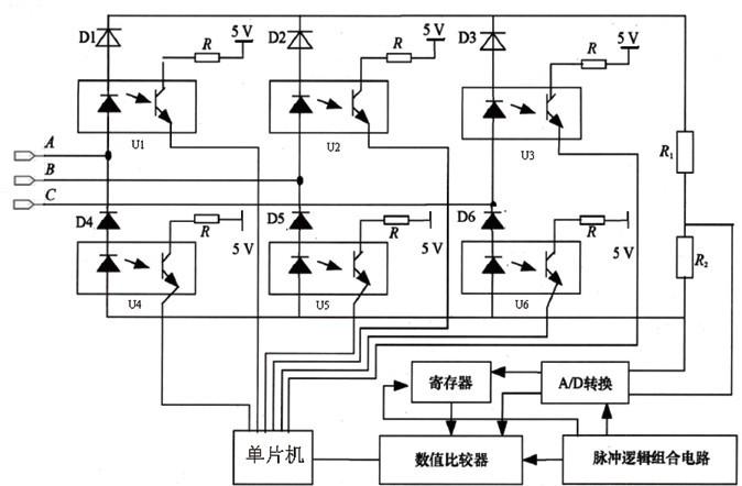 在使用三相交流電時,往往要利用三相交流電的自然換相點作為控制的參考點,所以需要對三相交流電的自然換相點進行檢測,以保證用電設備的安全可靠運行,同時對三相交流電的頻率、相序、缺相情況進行實時監測,并且在三相電源出現異常時,進行相應的告警并做出保護措施。