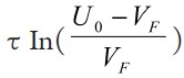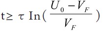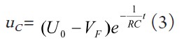 根據初始條件u C ( 0 + ) -V F =uC (0-)-VF =u0 -VF,并令式(2)的通解為uC -VF = Aem ,得該一階齊次微分方程的解為:
