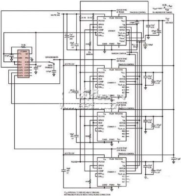 有些應(yīng)用集中于用4個(gè)并聯(lián)的μModule穩(wěn)壓器取代單個(gè)開(kāi)關(guān),這將通過(guò)多相同步降低峰值開(kāi)關(guān)電流。這些開(kāi)關(guān)是由一個(gè)相位變化的時(shí)鐘從外部驅(qū)動(dòng)的。每個(gè)開(kāi)關(guān)的接通時(shí)刻之間都是有間隔的,從而在輸入中產(chǎn)生均勻的電流分布。在這種大功率系統(tǒng)中,電壓紋波降低了。同步并聯(lián)穩(wěn)壓器的關(guān)鍵優(yōu)勢(shì)是,由于消除了輸入和輸出中的紋波電流,減小了輸入和輸出電容器的尺寸,從而消除了對(duì)大容量電容器的需求。