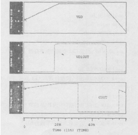 同時,為了保證充電控制管MC在過充電狀態下有效關斷,利用電平轉換電路使輸出COUT端為邏輯電路輸出信號的四級反相,從而使COUT端低電平由VSS降至V-。