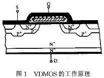 VDMOSFET是電壓控制器件,在柵極施加一定的電壓,使器件溝道表面反型,形成連接源區和漏區的導電溝道。基本工作原理如圖1。