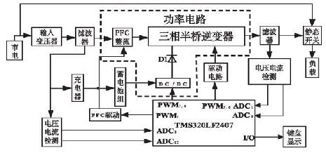 圖1 基于DSP 控制的在線式UPS 的結構圖