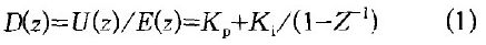 式中:Ki -- 積分系數,Ki= KoT/Ti;T--采樣周期; Ti-- 積分時間常數;Kp-- 比例因子;U(Z)--控制量輸出的z傳遞函數;E(z)- -偏差量的z傳遞函數。