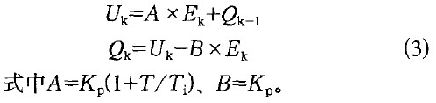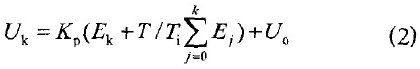 式中Uo-- 初始值;Uk - - 第k次采樣點獲得的控制量;Ek--第k次采樣點獲得的偏差量;Ej--第j次采樣點的偏差值;k一第k次采樣點。