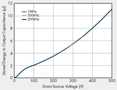 過去,許多設計人員都使用粗略假設來提供等效輸出電容值,因為輸出電容通常都指定為25V漏源電壓。不過,傳統的等效輸出電容值在實際應用中卻沒有多大幫助,因為它隨漏源電壓變化,并且在開關導通/關斷期間不能提供準確的儲能信息。在功率轉換器工作電壓下,新定義的輸出電容提供等效的儲能,能夠實現更優化的功率轉換器設計。