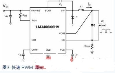 4. 通過外部分流器FET實現(xiàn)PWM調(diào)光。