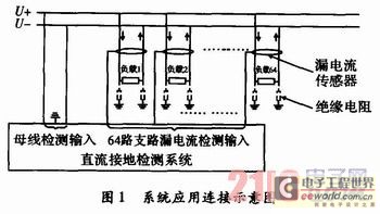 直流供電系統由于長時間在惡劣環境中工作,線路、連接器、接線端子、刀閘等會產生老化,從而導致正負母線的絕緣性能降低,對地絕緣電阻減小,產生漏電電流。漏電流的產生將會引起流入和流出用電負載的電流不一致(部分電流經過絕緣電阻流入大地)。非接觸式直流漏電流傳感器,能夠把流入和流出傳感器的直流電流差感應成直流電壓。這樣在每個用電負載的輸入和輸出線路上安裝一個非接觸式直流漏電流傳感器,就能檢測出每個用電負載或者線路的漏電流。直流接地檢測系統則根據漏電流傳感器的感應電壓求出漏電流的大小。然后通過“平衡-不平衡法”檢測出正負母線對地電壓,根據母線電壓和漏電流求出各個支路絕緣電阻的大小。