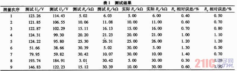 由1~5組可知,當絕緣電阻大時,測試相對誤差略有增大,這是因為采樣A/D的輸入阻抗較小,因此當測試電阻較大時造成誤差相對大些。另外,當負母線的絕緣電阻<30 kΩ、負母線絕緣電阻正常時,前者的測量效果差些。因為此時實際測得的電壓U2和U3都較小,A/D采樣的相對誤差大一些,所以電阻的誤差也大一些。不過遠好于平衡橋法無法發現兩點接地的情況,可以正卻發現接地。絕緣檢測的環境下,只要絕緣電阻>20 kΩ即認為絕緣良好,因此對于絕緣檢測的應用環境,本系統能夠比較精確的測試各路的絕緣電阻,完全滿足應用環境的需要。