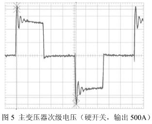 圖4 IGBT開通、關(guān)斷的電壓、電流(軟開關(guān)) 肖介光等:IGBT逆變焊機(jī)電磁騷擾的抑制 同時,由于主變壓器的漏感及分布電容在 IGBT 開通、關(guān)斷時,常常產(chǎn)生高頻高壓尖峰震蕩,由此而產(chǎn)生的高次諧波可由多種途徑傳入內(nèi)部電路,也可通過散熱器及主變壓器等途經(jīng)向空間輻射。