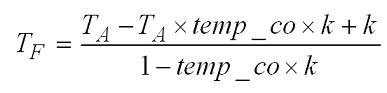 這里要注意的一件事情是電感器的功耗是其線圈電阻的函數,后者會隨著溫度發生變化。因此,需要考慮計算電感器在給定RT的TF。將RT的等式插入電感電阻與溫度等式并求解TF可以得出: