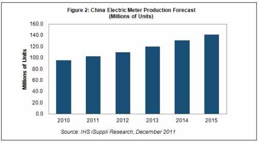 迄今為止,國(guó)家電網(wǎng)公司在2011年進(jìn)行了五輪智能電表招標(biāo),第五輪招標(biāo)在11月底進(jìn)行,正好是在撰寫(xiě)本文的時(shí)候。通過(guò)這五輪招標(biāo),國(guó)家電網(wǎng)公司可能總計(jì)要采購(gòu)大約6830萬(wàn)個(gè)電表,其中5970萬(wàn)個(gè)是智能電表。IHS公司認(rèn)為,五輪招標(biāo)金額將超過(guò)18億美元,國(guó)家電網(wǎng)公司表示將從明年開(kāi)始大規(guī)模建設(shè)。