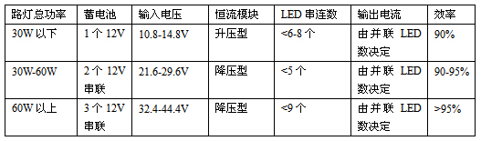 3.1 蓄電池只有幾種規(guī)定的電壓,12V是最常使用的,因為它是汽車電池的標準電壓。24V就需要用兩個串聯(lián)。36V就更少見了。為此,在太陽能LED路燈中經(jīng)常需要采用升壓型的恒流驅(qū)動模塊。這就影響了恒流模塊的效率。