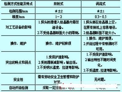 兩種結晶器液位檢測的綜合分析比較如附表所示。