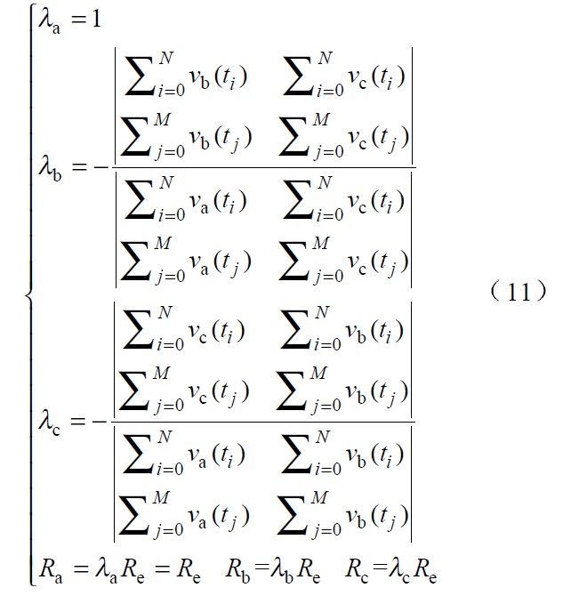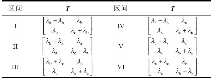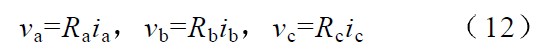 式 (11 )為相電壓不對稱系數(shù)的計(jì)算公式,其中λa ,λb 和λc 為相電壓不對稱系數(shù),Re 為標(biāo)準(zhǔn)等效電阻。可見,當(dāng)電網(wǎng)電壓不對稱時(shí),為使各相電流仍能正確跟蹤對應(yīng)相電壓,各相等效電阻值是不同的。特殊地,如果三相電壓對稱,λa=λb=λc =1 ,則Ra=Rb=Rc=Re.