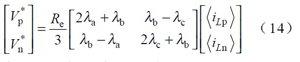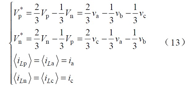 根據(jù)式 (3 ),以區(qū)間I 為例,可以通過控制開關(guān) Tp 、Tn 使電感電流iLb iLc 對應(yīng) V *p和 V *n相應(yīng)的變化來實(shí)現(xiàn)。由于在I 區(qū)間內(nèi)有: