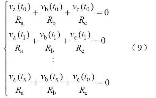 三相輸入電壓不對稱時(shí),假設(shè)各相電流跟蹤各自的相電壓此,時(shí)可令從輸入端看進(jìn)去各相對中線的等效電阻為Ra ,Rb 和Rc 。因系統(tǒng)采用三相三線制在任意時(shí)刻均有: