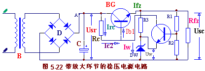 如果輸出電壓Usc 增高時,同樣道理,又會通過反饋作用使Usc 減小,保持輸出電壓基本不變。