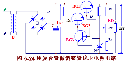 • 用復合管做調整管的穩壓電源