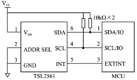 圖3 微控制器與TSL2561的硬件連接圖
