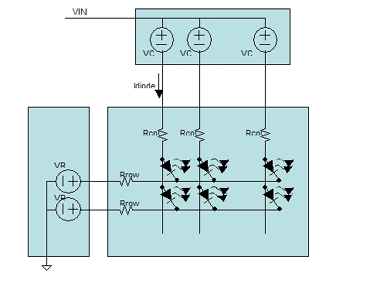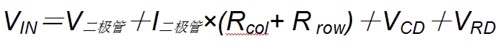 其中:V二極管是二極管的前向壓降;I二極管是流經二極管的電流;Rcol是列連接的電阻;Rrow是行金屬的電阻;VCD是列驅動器所需的開銷;VRD是行驅動器所需的開銷;在典型應用中,VIN大約為20V。