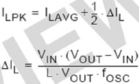 其中:ΔIL是電感電流的紋波峰峰值,單位是A;L是電感值,單位是H;FOSC是開關頻率。