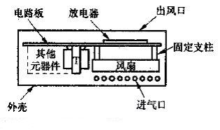 風扇M固定在電路板下方,風扇中心正對著放電器,相距15mm左右。風扇的出風方向應朝上,以便將放電器產生的負離子向上吹到空氣中。整機應裝入絕緣外殼中,在外殼上面正對放電器的位置開一些孔縫作為出風口,在外殼兩側靠近風扇的地方開孔作為進氣口。12V電源線與汽車點煙器插頭相連接。