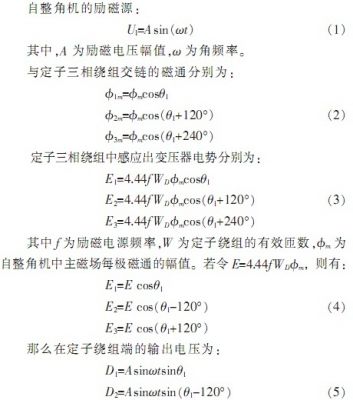 如圖1所示,自整角機主要由定子和轉(zhuǎn)子組成,定子和轉(zhuǎn)子問有很小的空氣隙,自整角機的激磁磁場,是一個磁場軸線在空間固定于激磁繞組軸線上,磁通密度分布曲線的幅值隨時間交變的脈振磁場。當轉(zhuǎn)子繞組偏離中線位置時,轉(zhuǎn)子激磁繞組所產(chǎn)生的脈振磁通必定和定子各相繞組相匝鏈,因而在定子各相繞組中感應出電勢。