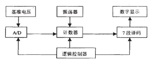 放大后的模擬電壓經過A/D轉換器實現模擬量到數字量的轉換。A/D轉換結果通過計數譯碼電路變換成7段譯碼,最后驅動顯示出相應的數值, 傳感器驅動顯示電路方框圖如圖6所示。