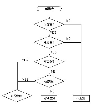 印刷機整體的電氣設計還是比較復雜的,對時間的要求也很嚴格。在機器的很多地方裝有接近開關,用來檢測不同的時間點。在印刷過程中,走紙的好壞是影響機器質量的一個重要環節。所謂紙走的好壞,指的是無歪張,雙張等現象,如果有歪張,雙張現象,在高速情況下,就會將走壞的紙,卷入機器內,從而破壞膠皮,給用戶帶來很大損失。此過程流程如下: