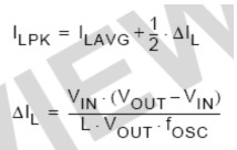 其中:ΔIL是電感電流的紋波峰峰值,單位是A;L是電感值,單位是H;FOSC是開關頻率。