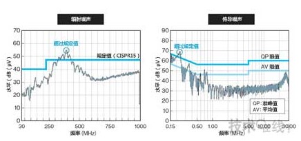 EMC規定中定義了輻射噪聲和傳導噪聲兩種電磁噪聲的測量,LED燈泡也不例外。有的LED燈泡產品的噪聲超過了CISPR15的規定值(準峰值:QP和平均值:AV)。