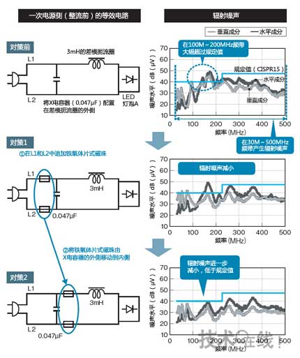 圖11:LED燈泡的輻射噪聲對策示例