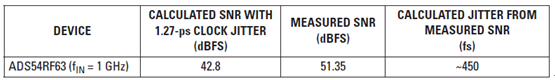 表 5 90-fs 時鐘抖動和 RF 放大器的 SNR 結果