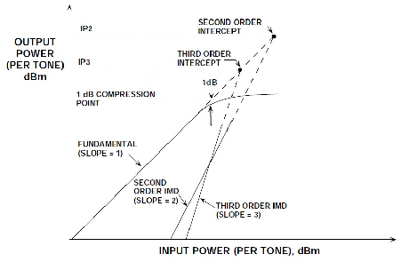 二階和三階交調截點(IP2, IP3)、1-dB 壓縮點